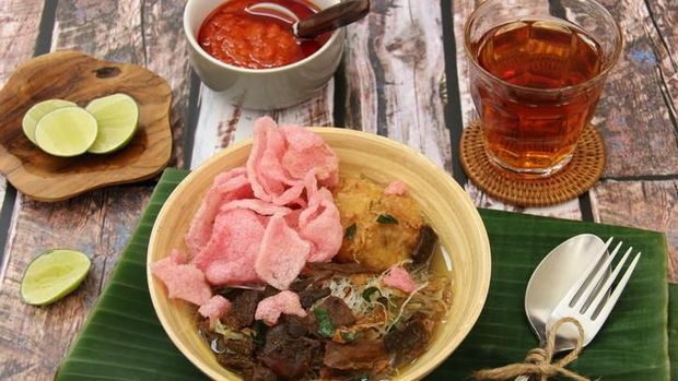 Rasa masakan khas Sumatera Barat ini gurih dan segar saat disajikan hangat-hangat. Ditambah lagi nasi atau ketupat serta kerupuk warna pink khas Padang.